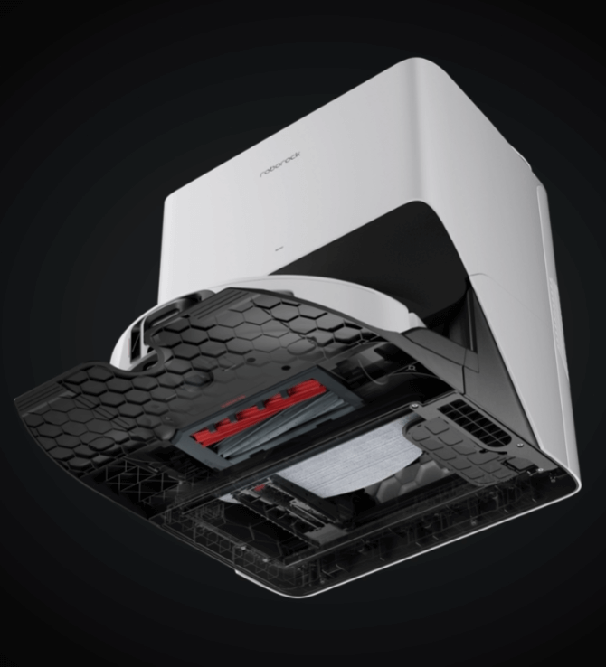 외관상으로는 화이트 색상으로 S7 max ultra와 S8 pro ultra 간 큰 차이는 있지 않습니다. 자세히 들여다보면 아래 달린 브러시 모양이 변했습니다. S7의 경우 5 가닥, S8은 3 가닥으로 개수는 줄었으나 모양이 잔 브러시 모양으로 변경되었습니다. 먼지 집진 효율과 내구성이 더 좋아졌다고 합니다.