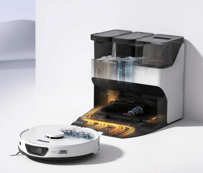 도킹 시스템은 두 모델 모두 먼지 비우는 기능과 물걸레 세척기능을 가지고 있습니다. S8 pro ultra 추가된 기능은 물걸레를 새척후 열풍으로 건조까지 해주는 기능이 탑재되었습니다. 실제 건조 해보면 뽀송하게 걸레가 건조돼있는 것을 확인할 수 있습니다.